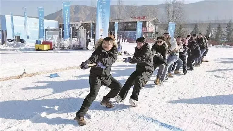 選手們在冰上拔河項(xiàng)目中奮力比拼