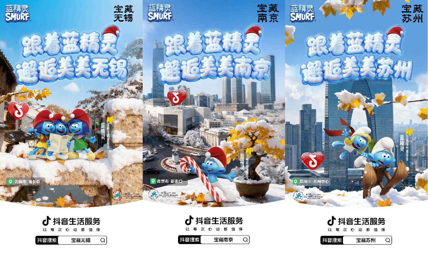 藍精靈IP的加入,則讓江南秋冬更添童趣。抖音生活服務(wù)打造藍精靈主題“美美巴士”,在南京、蘇州、無錫三城核心商圈與景區(qū)巡游,用戶打卡合影、帶話題發(fā)視頻即可領(lǐng)取限定周邊與商家優(yōu)惠券。與此同時,“城市隱藏藍精靈”打卡活動同步上線,聯(lián)動40多個商家鋪設(shè)主題物料,用戶跟著巡游地圖打卡就能兌換禮品,有效拉動線下交易,12月10日-19日,參與商家掃碼核銷GMV環(huán)比日均增長19.5%。