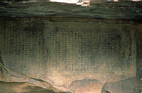 鏨字巖摩崖石刻,位于屏山鎮(zhèn)發(fā)明村北側(cè)掌鳩河西岸上,由二方漢文石刻和一方彝文石刻組成。兩方漢文石刻“武定軍民府土官知府鳳世襲腳色記”和“鳳公世系”記載的事實(shí)真實(shí)可靠,在許多問題上比《明史土司傳》、《土官底薄》、《云南通志》以及《武定府志》、《祿勸縣志》等書詳備。彝文石刻與上述二石刻并列,寬2m,高82cm,直書橫排,共33行,563字,四周刻葵葉雙線邊框,這方彝文摩崖,主要記述了羅婺部(鳳氏)十四代世襲土知府350多年的譜系。它與貴州大方縣的千歲衢碑同為最古老的彝文碑記。