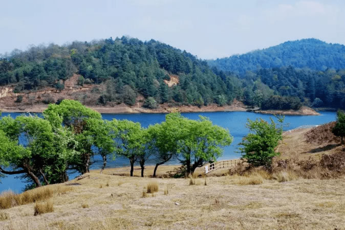 亮山天池位于涌寶鄉(xiāng)南,距縣城66千米,距涌寶鄉(xiāng)駐地7千米,海拔2400米,蓄水240萬立方米,面積0.1平方千米,南依亮山林海——面積1.96萬畝的生態(tài)林場;北臨草場花海。