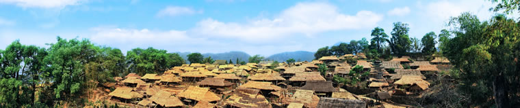 翁丁的“翁”為水,“丁”為接,翁丁,意為連接之水。該地有幾條小河相互連接,以此得名。翁丁原始村落距縣城30千米,屬勐角鄉(xiāng)管轄范圍,共有98戶人家,400多人。因?yàn)樵摯暹保留著許多佤家的傳統(tǒng)習(xí)俗和信仰而稱之為原始村落。