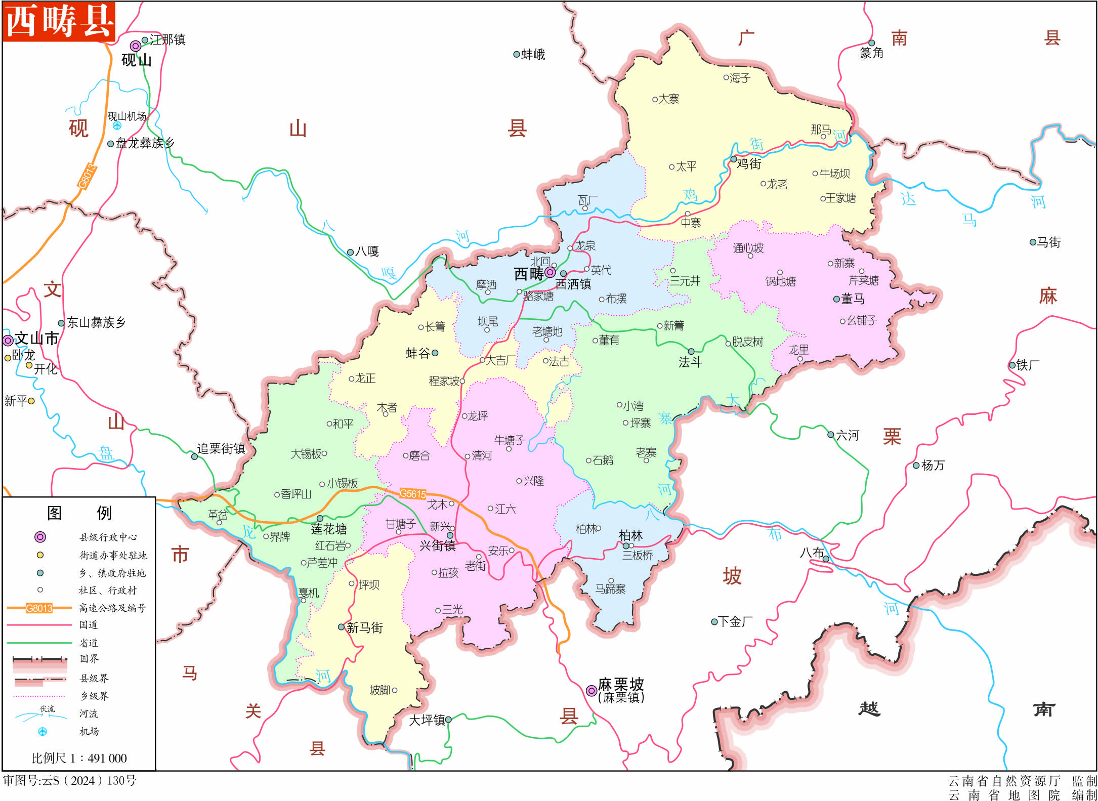 位置境域 西疇縣處在云南省東南部,文山壯族苗族自治州中部偏南,北回歸線橫貫縣境;東南接麻栗坡縣,西南隔盤(pán)龍河與馬關(guān)縣相望,西靠文山、硯山兩縣,東北以達(dá)馬河為界與廣南縣毗鄰;距省會(huì)昆明市265千米,公路里程480千米;距州府駐地開(kāi)化鎮(zhèn)46千米,公路里程經(jīng)蚌谷72千米,經(jīng)興街85千米?偯娣e1506平方千米。