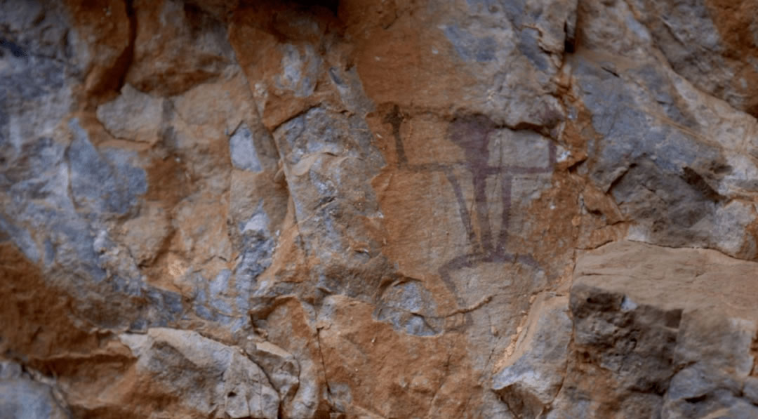 1985年發(fā)現(xiàn)的它克崖畫經(jīng)專家考證,成畫年代為距今三千年前后原始社會(huì)晚期,畫面描繪了古代人類的圖騰崇拜以及生產(chǎn)、生活情景,是少見的藝術(shù)珍品和研究古代人類社會(huì)的寶貴資料。崖畫位于青龍廠鎮(zhèn)它克村東北的扎營峰南麓。崖畫長19.5米,高3米,繪各種圖象92個(gè),畫用赭紅色畫成。崖畫之上200米,有一個(gè)水平溶洞,當(dāng)?shù)厝朔Q“陰賓洞”。洞內(nèi)高大寬敞,幽深,洞口向陽,避風(fēng),干燥,適宜穴居,推斷為崖畫人居住過。崖畫畫面反映的是人類對(duì)太陽、星星、天體、自然的崇拜和對(duì)人類始祖——母親的崇拜和性崇拜。 1987年12月被云南省人民政府列為云南省第三批重點(diǎn)文物保護(hù)單位之一。