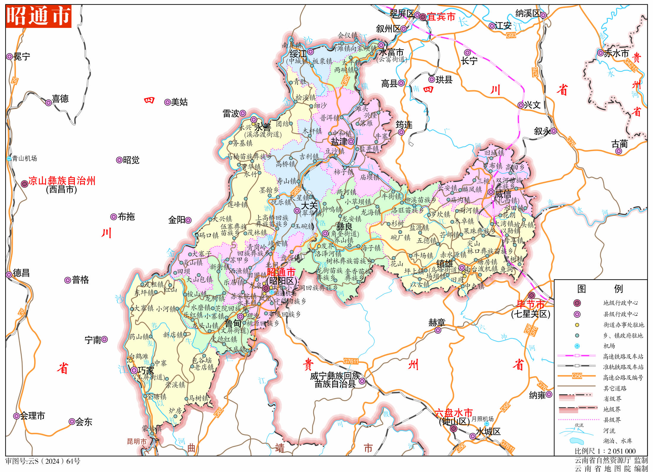 昭通市位于云嶺高原與四川盆地的結(jié)合部,東側(cè)緊鄰貴州省畢節(jié)市,南側(cè)緊鄰云南曲靖市,西側(cè)緊鄰四川涼山彝族自治州以金沙江為界相鄰,北側(cè)緊鄰四川宜賓市以金沙江為界相鄰,面積2.3萬平方千米。