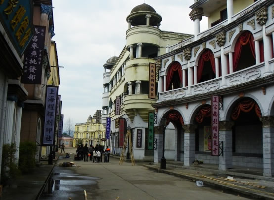 1996年,為拍攝獻(xiàn)禮巨片《鴉片戰(zhàn)爭(zhēng)》建造了第一個(gè)影視拍攝基地——廣州街景區(qū)。