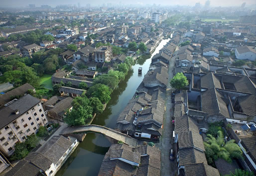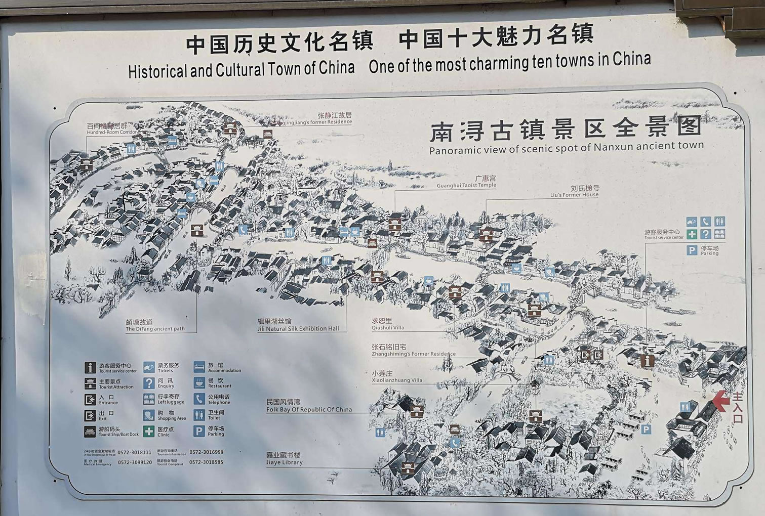 古鎮(zhèn)南潯古鎮(zhèn)景區(qū)占地面積34.27平方公里,東界至宜園遺址東側(cè)起,西界至永安街起,南界自嘉業(yè)堂藏書樓及小蓮莊起,北界至百間樓。古鎮(zhèn)以南市河、東市河、西市河、寶善河構(gòu)成的十字河為骨架,其間又有許多河流縱橫交錯,街和民居沿河分布,隨河而走,以南東街、南西街為串聯(lián),構(gòu)成了十字形格局,街巷肌理完整,河道水系基本保存。十字河兩岸形成商業(yè)街道,既有傍水筑宇、沿河成街的江南水鄉(xiāng)小鎮(zhèn)風貌,又有眾多高品質(zhì)的私家大宅第和江南園林,形成了小橋流水人家與大宅園林交相輝映的街區(qū)特色。