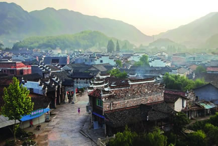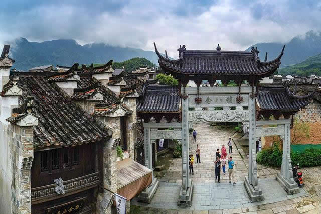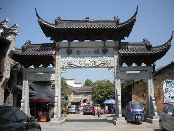 古鎮(zhèn)的大戶有曹、姜、楊、金四家。他們圍繞著宗族而居,至今還保留著36幢完整的古民居大院。站在老街上,最富有特色的是家家戶戶的門楣。門楣多為樓閣式,由梁、枋、檐、望板和垂簾虛柱構(gòu)成四柱三樓式。各個(gè)部件都有精細(xì)的木雕裝飾,題材多為福祿壽、合和二仙等吉祥物。這木制的門楣和江南其他地區(qū)的磚雕門樓有著截然的反差,使人走在這老街之上,無不被這景色所吸引。看這徽式的馬頭墻、浙式的屋脊、贛式的檐櫞、閩式的土墻,其內(nèi)涵的豐富已足以使建筑學(xué)家所驚嘆。