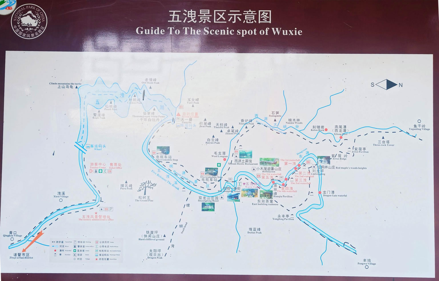 諸暨五泄風(fēng)景區(qū)位于諸暨市西北23公里處。72峰、36坪、25崖、10石、5瀑、3谷、2溪、1湖,為五泄構(gòu)成了天然的山水畫(huà)卷,素有“小雁蕩”之稱。當(dāng)?shù)厝朔Q瀑布為洩,一水折為五級(jí),所以叫“五洩”。五泄飛瀑為大型奇幻古裝電視劇【水月洞天】取景處。