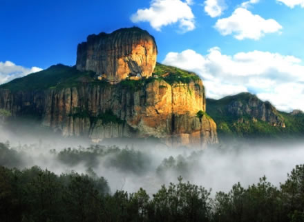 南雁蕩山,簡(jiǎn)稱(chēng)南雁,位于平陽(yáng)縣西部,距溫州市區(qū)87千米。主峰明王峰,海拔1080米,山頂有泥塘沼澤,秋科時(shí)節(jié)有大雁在此棲息,且與北雁蕩山遙望相對(duì),故名南雁蕩。南雁蕩山總面積97.68平方千米,群巒疊翠,飛瀑溪潭,共有67峰、28巖、24洞、13潭、8潭、9石。南雁蕩的開(kāi)發(fā)較早于北雁蕩,五代時(shí)高僧愿齊就率三百名門(mén)徒在此開(kāi)發(fā)。