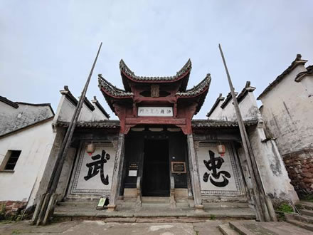 位于村的中心,坐北朝南。前面有一個(gè)名曰“鐘池”的水塘,鐘池有一道墻,正面是一幅大八卦圖(左),背面是一個(gè)“!弊帧4蠊梦挥阽姵乇眰(cè),始建于明代,據(jù)說(shuō)是江南地區(qū)僅存的諸葛亮紀(jì)念堂。祠堂前后五進(jìn),建筑面積700平方米。里間十分開(kāi)闊,可供數(shù)千人舉行活動(dòng)。堂內(nèi)壁上繪有三顧茅廬、舌戰(zhàn)群儒、草船借箭、白帝托孤等有關(guān)諸葛亮的故事壁畫(huà)。堂外圍墻旁現(xiàn)存六株龍柏,暗示諸葛后人六族繁衍,人丁興旺。門(mén)庭飛閣重檐,高約10米,上懸一塊橫匾“敕旌尚義之門(mén)”。頂層有明英宗于正統(tǒng)四年(1439)所賜盤(pán)龍圣旨立匾一方,表彰諸葛彥祥賑災(zāi)捐谷千余石的義舉。整座建筑古樸典雅,氣勢(shì)恢宏,保存完好。