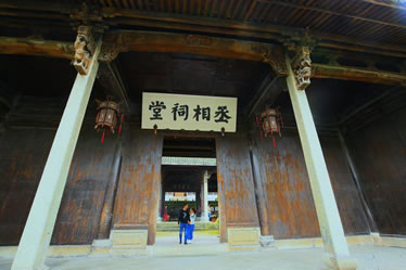 丞相祠堂也是為紀(jì)念諸葛亮而修建的,與大公堂相距百米,面積1400平方米。坐東朝西,平面按“回”字形布局,有屋52間,由門(mén)廳、中庭、廡廊、鐘鼓樓和享堂組成,古樸渾厚,氣勢(shì)非凡。祠堂雕梁畫(huà)棟,門(mén)窗欄桿等部件均雕刻精細(xì),美不勝收。中庭是祠堂最精彩的部分,中間四根合抱大柱,選用上好的松、柏、桐、椿四種木料制成,取“松柏同春”之意,祈求家族世代興旺。中庭兩邊廡廊各七間,塑諸葛后裔中的杰出人士,用來(lái)激勵(lì)諸葛子孫們奮發(fā)向上,成就一番事業(yè)。從廡廊拾級(jí)而上,兩旁分列鐘、鼓二樓。祠堂最后是享堂,中塑諸葛亮像,高2米余,兩側(cè)分侍諸葛瞻、諸葛尚及關(guān)興、張苞像,氣韻生動(dòng),呼之欲出。